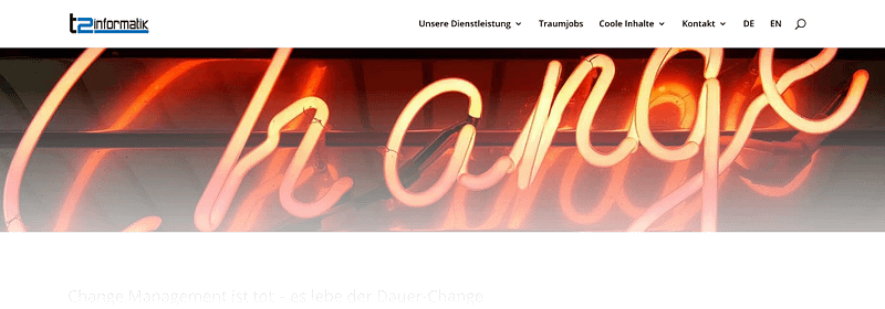 Change Management ist tot – es lebe der Dauer-Change Für den Blog von t2informatik durfte ich einen Gastartikel schreiben: Hier kannst du den ganzen Artikel lesen: